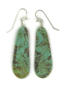 Expertly handcrafted by renowned Santo Domingo artist Ronald Chavez, these striking earrings feature hand-cut green Turquoise slab bases with a unique pattern.